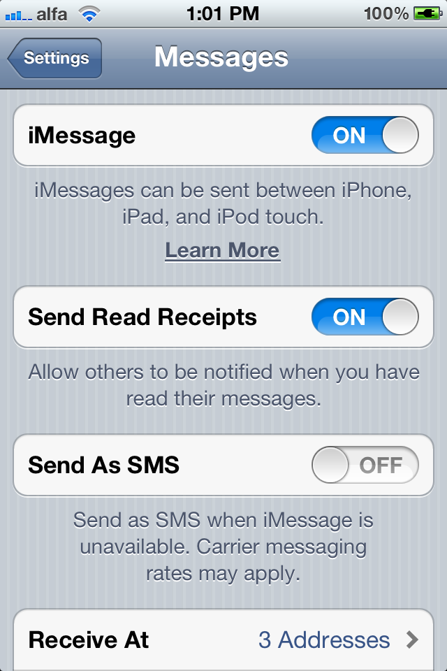 I cannot stress how easy and smooth the whole iMessage process has been. You go into messages in settings, set it up with a simple click (yes, it’s an on/off button) and a few minutes later, you’re good to go. You can enable iMessage to work on many IDs: phone number, different emails and you can also set your caller ID to be any of those verified emails or phone number.