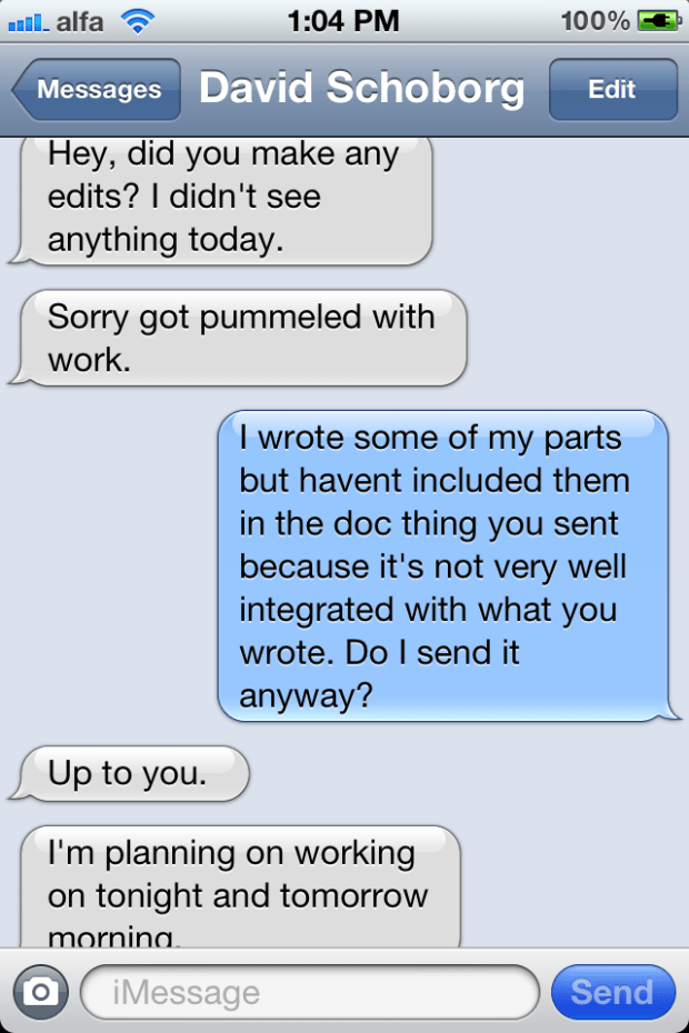 And then you just chat with whoever you want. In my case, I’ve been extensively chatting with Dave (our iMessage thread has like 500 messages so far). And the whole thing goes without a hitch (unless you factor in Lebanese internet but that’s not Apple’s fault).