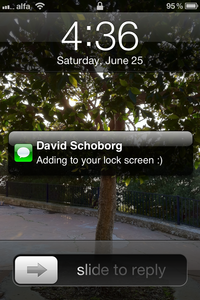 PS: The style of notifications you get on the lockscreen for receiving a text has changed with iOS 5 beta 2 to something that looks like this: