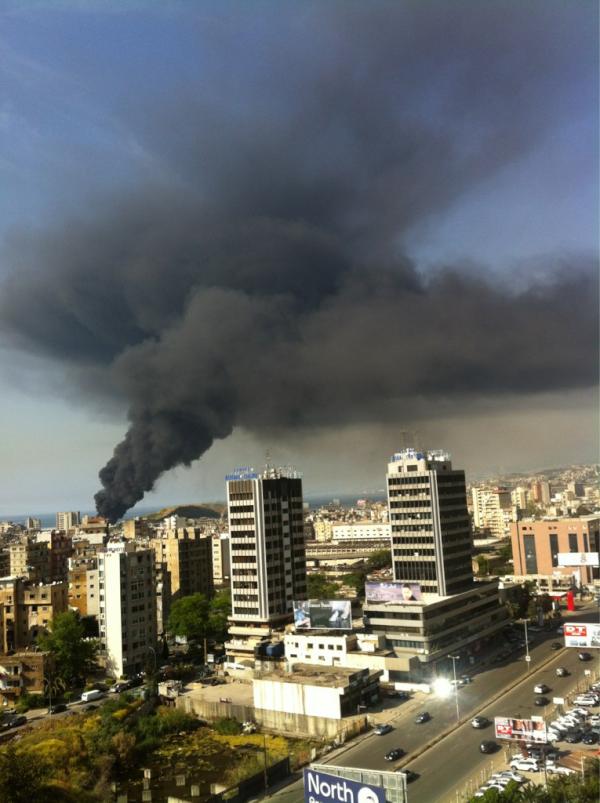 My twitter timeline is full of pictures taken of a huge fire taking place at the edge of Beirut today, next to the Karantina landfill. Apparently the cause of the fire is unknown at this point, but based on the pictures that it could be the landfill. The location is also very close to the fuel reserves in Dawra.