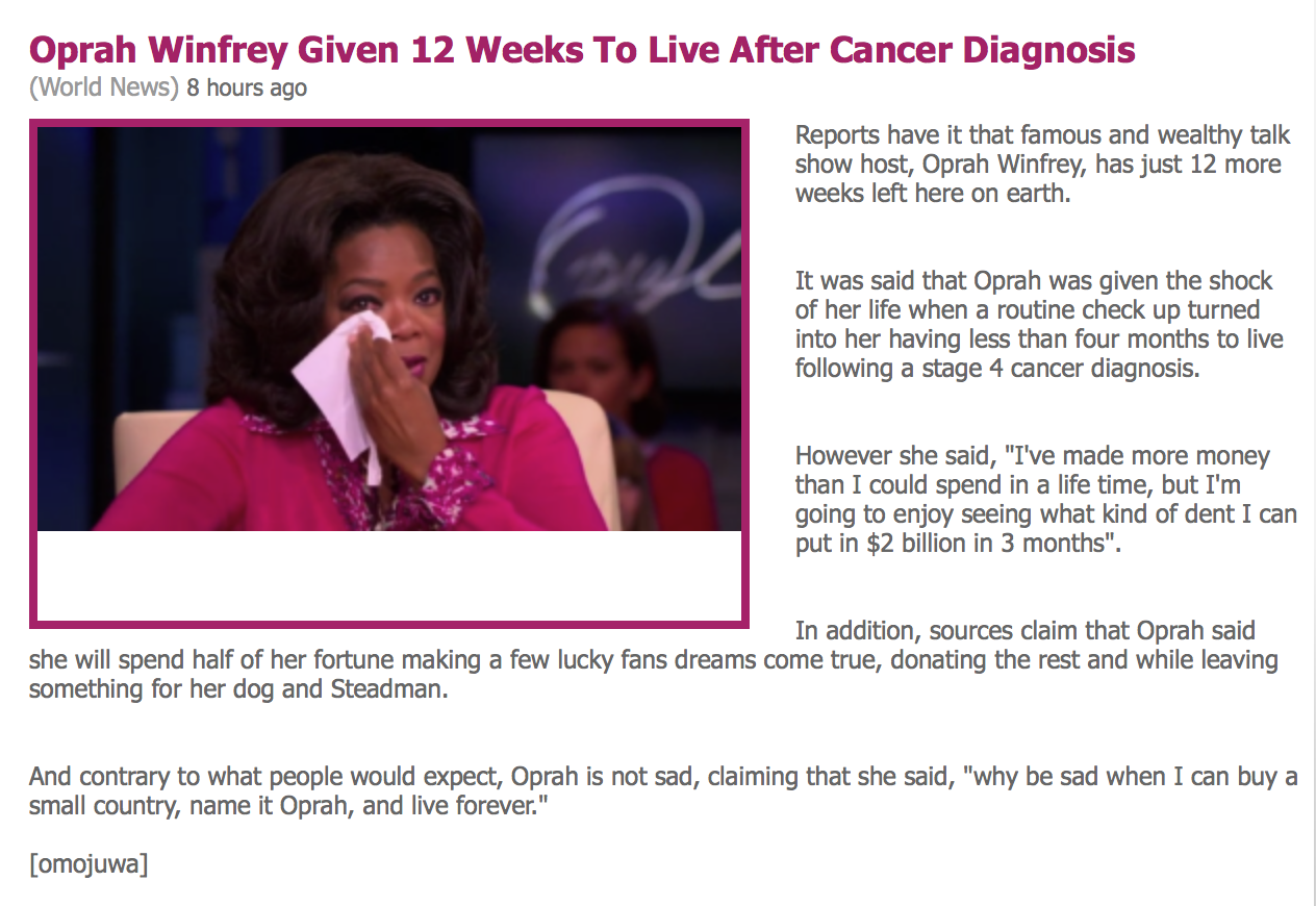 Screen Shot 2014-11-17 at 11.01.29 PM Published in Fail: Lebanese Media Gives Oprah Cancer ← Previous Next → As a rule of thumb, when you can’t pronounce the source, you just don’t use it. Share this:Tweet Click to share on WhatsApp (Opens in new window) WhatsApp Click to share on Telegram (Opens in new window) Telegram Click to share on Reddit (Opens in new window) Reddit Pocket Click to email a link to a friend (Opens in new window) Email Click to print (Opens in new window) Print Share on TumblrLike Loading...