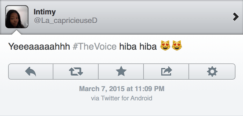 Hiba Tawaji The Voice – 10 Published in Hiba Tawaji Wins Her Battle on France’s The Voice ← Previous Next → Share this:Tweet Click to share on WhatsApp (Opens in new window) WhatsApp Click to share on Telegram (Opens in new window) Telegram Click to share on Reddit (Opens in new window) Reddit Pocket Click to email a link to a friend (Opens in new window) Email Click to print (Opens in new window) Print Share on TumblrLike Loading...