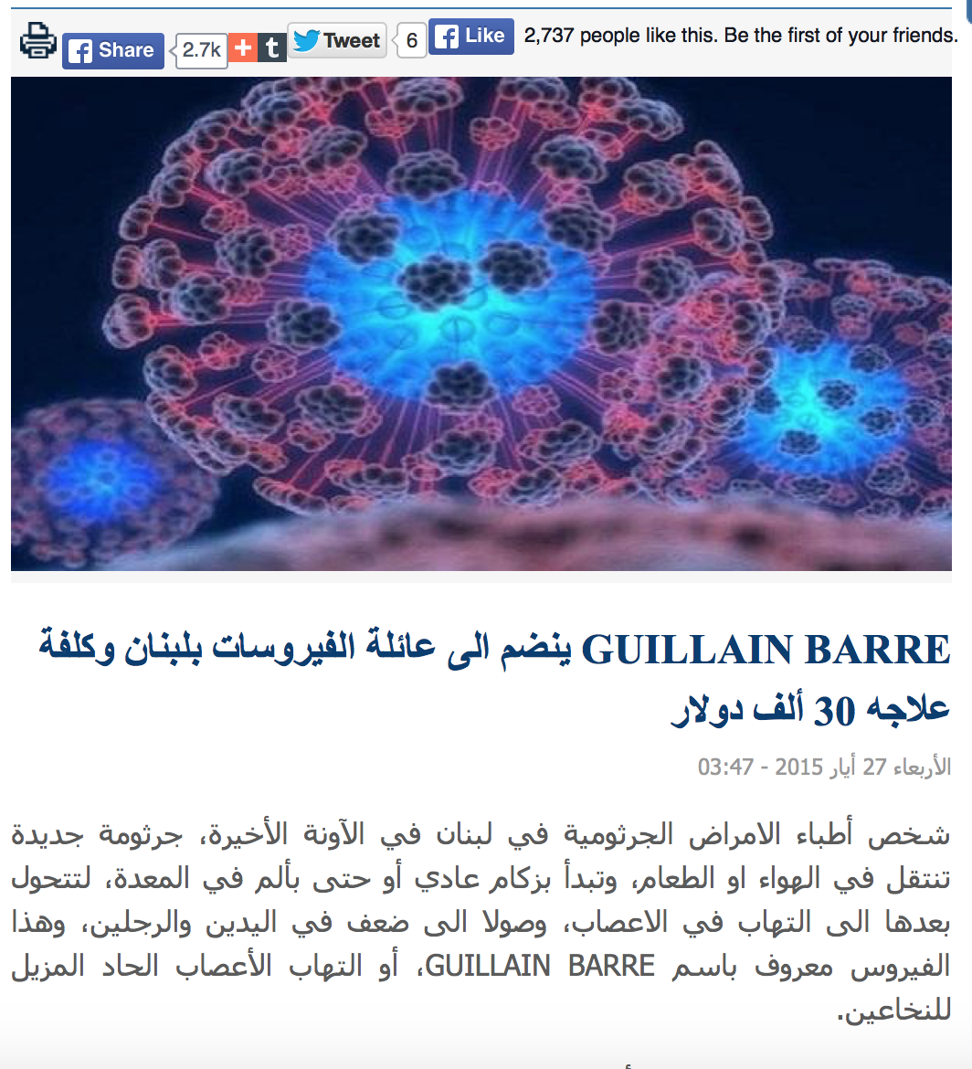 Guillan Barre Virus Lebanon – 3 Published in Dear Lebanon, There’s No Such Thing As A “Guillain-Barre” Virus ← Previous Share this:Tweet Click to share on WhatsApp (Opens in new window) WhatsApp Click to share on Telegram (Opens in new window) Telegram Click to share on Reddit (Opens in new window) Reddit Pocket Click to email a link to a friend (Opens in new window) Email Click to print (Opens in new window) Print Share on TumblrLike Loading...