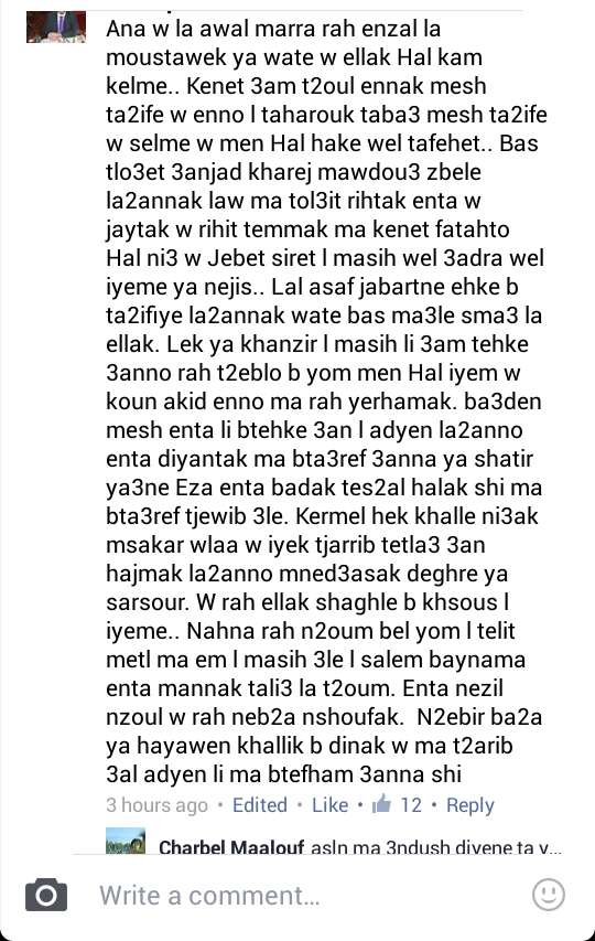 Assaad Thebian FPM- 1 Published in When The FPM Is In Full Blown Despair: Assaad Thebian Did Nothing Wrong ← Previous Screenshot by Chafic Atallah. Share this:Tweet Click to share on WhatsApp (Opens in new window) WhatsApp Click to share on Telegram (Opens in new window) Telegram Click to share on Reddit (Opens in new window) Reddit Pocket Click to email a link to a friend (Opens in new window) Email Click to print (Opens in new window) Print Share on TumblrLike Loading...