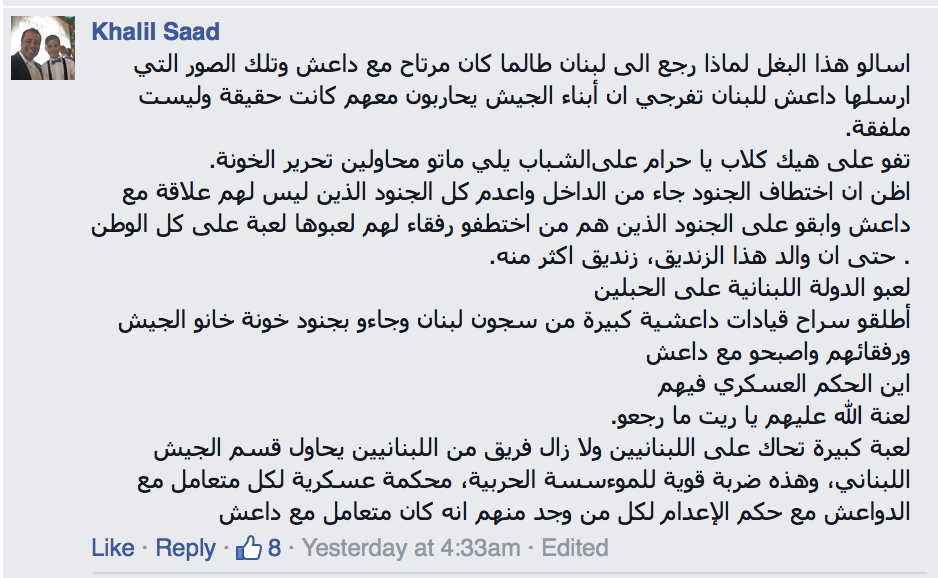 Al Nusra Response Lebanon – 9 Published in Stop Blaming & Shaming Lebanese Army Freed Hostages For Thanking Their Captives “Al Nusra” ← Previous Next → Share this:Tweet Click to share on WhatsApp (Opens in new window) WhatsApp Click to share on Telegram (Opens in new window) Telegram Click to share on Reddit (Opens in new window) Reddit Pocket Click to email a link to a friend (Opens in new window) Email Click to print (Opens in new window) Print Share on TumblrLike Loading...