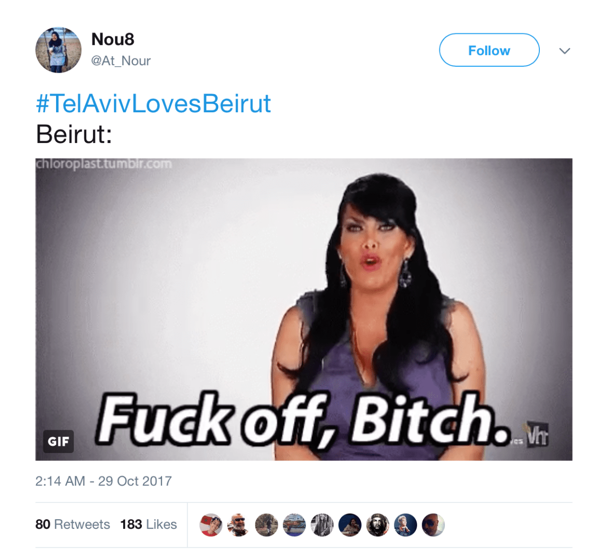 Screen Shot 2017-10-30 at 8.50.08 AM Published in How A Tweet Launched A Mini Regional Crisis: Mossad Launches #TelAvivLovesBeirut, and Beirut Responds ← Previous Next → Share this:Tweet Click to share on WhatsApp (Opens in new window) WhatsApp Click to share on Telegram (Opens in new window) Telegram Click to share on Reddit (Opens in new window) Reddit Pocket Click to email a link to a friend (Opens in new window) Email Click to print (Opens in new window) Print Share on TumblrLike Loading...