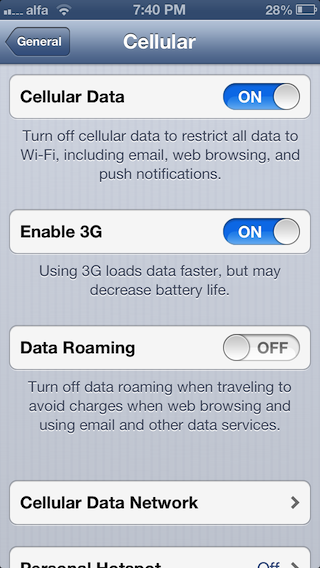 If you own an iPhone on Alfa’s network you’ll notice the following button to enable or disable 4G.
