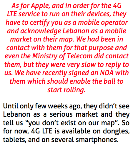 However, there is a discrepancy in the rollout of the service between Lebanon’s two carriers that I believe has to be outlined for transparency’s sake and it is the following.