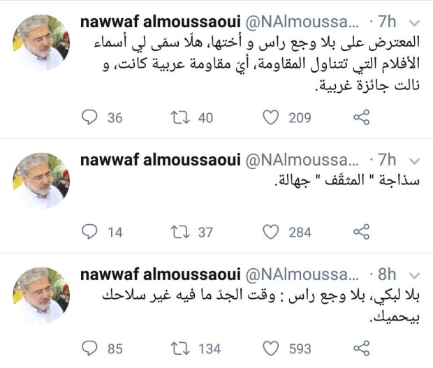 Her tweet, calling Lebanese people celebrating Nadine Labaki’s win “the sons of Phoenicia,” ridiculing them and belittling them in the process, telling them that there’s no reason to be proud of Nadine Labaki’s accomplishment because of the superiority of the deaths of Hezbollah militants in Syria.