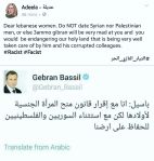 Lebanese blogger Mahmoud Ghazayel had a tweet (now deleted) in which he corrected Bassil’s statement to this: