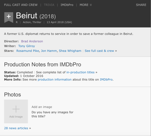 The trailer for Jon Hamm’s latest movie, titled Beirut, and produced by Bleeker Street, was released yesterday. The movie, set in 1982, tells the story of an American officer who finds himself back in Beirut 10 years after his family was killed there to save a friend of his who works in the CIA after he was kidnapped by some Islamic terrorist organization.