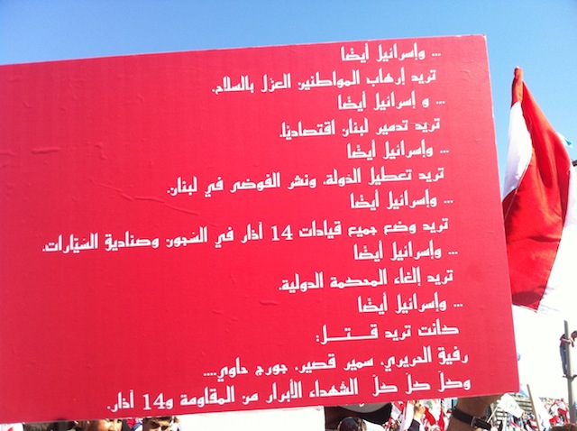 So on March 13th, let us all go down as a testimony of our belief that Lebanon will never prosper under a mandate of unlawful arms is unacceptable. Martyr’s Square will be our testimony on Sunday