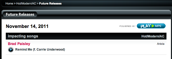 Hot AC success for country songs is seen by many as a gateway for entry to pop radio, which is becoming more and more receptive to country songs without remixes, as shown by Taylor Swift’s “Back To December” and Lady Antebellum’s “Just A Kiss,” currently at #25.