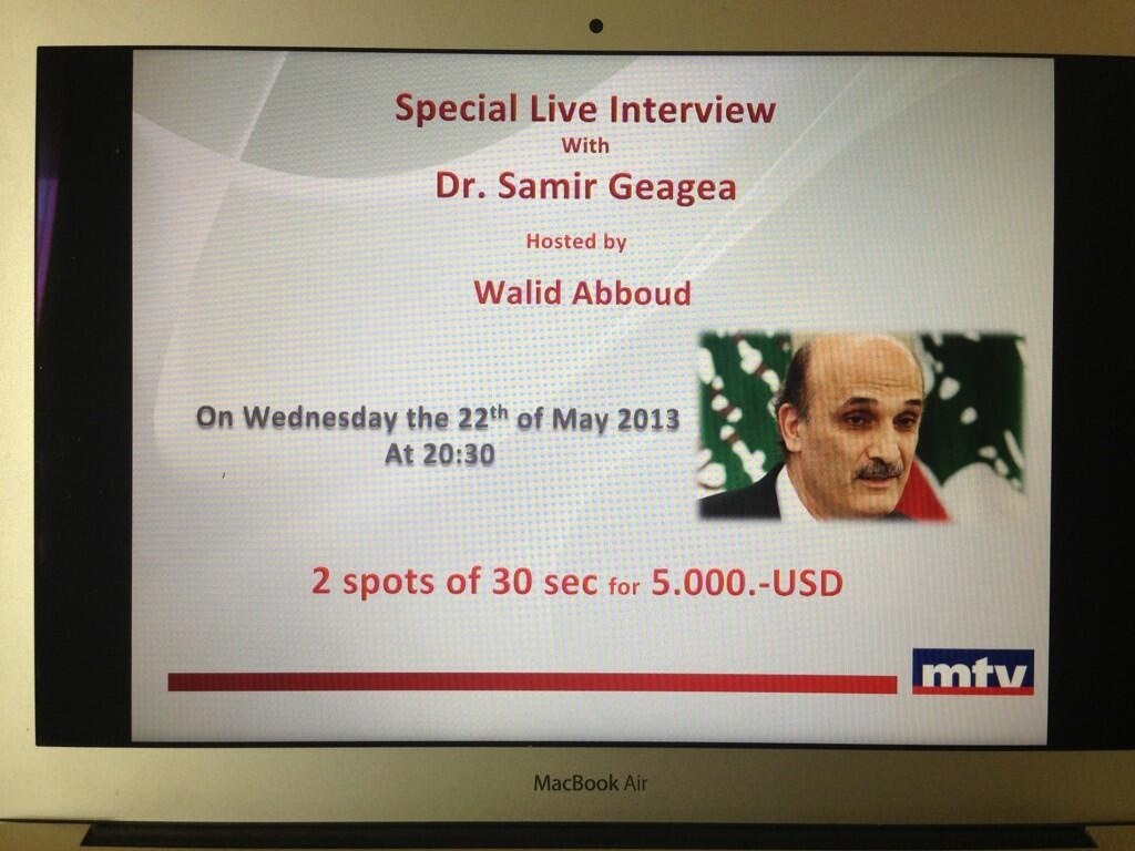 The most interesting part of the picture to me was the cost to run an ad on MTV during Samir Geagea’s show. Two 30 second ads can cost you up to $5000.