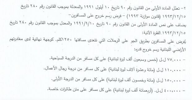 10. Enforcing taxes on passengers leaving the country, whether through land or sea or air, to add 125 billion LL.