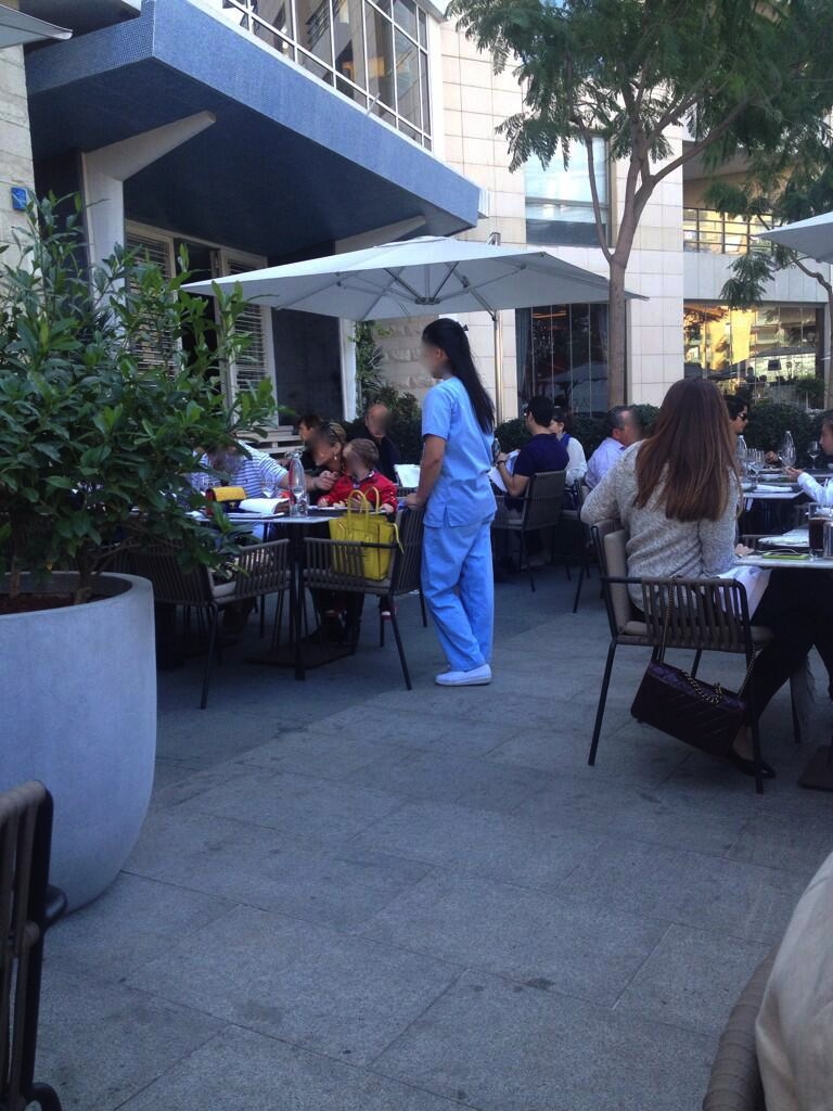 A Lebanese family was sitting across the place from her having their Sunday lunch. They were all seated happily, enjoying their food. The father was cuddling his newborn who was sitting on his mother’s lap. And there was their maid, standing there, clutching the chair that was empty… save for the bag of the madame.