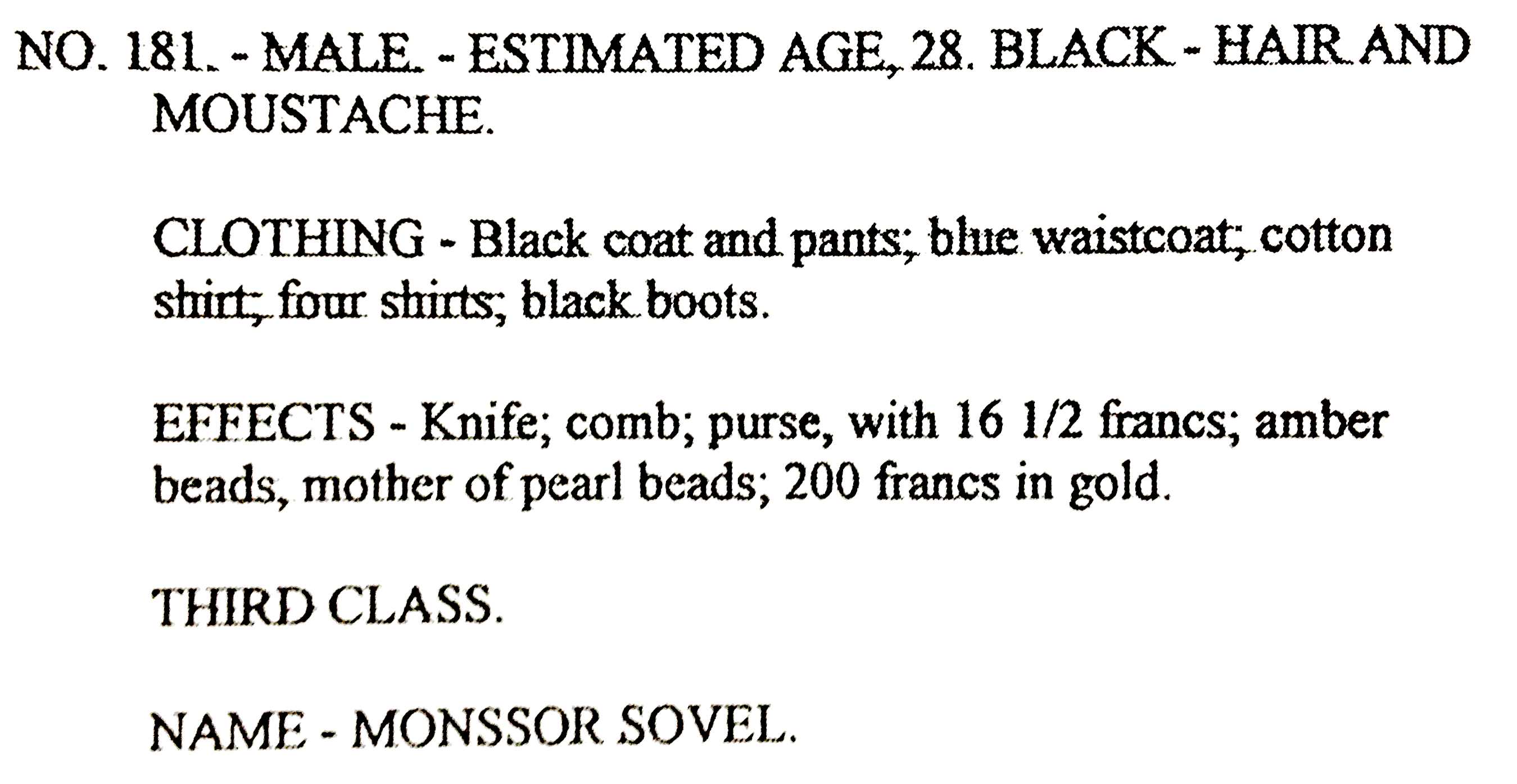 They say people truly die when they’re no longer in anyone’s memory. This is my attempt, at least briefly, to get the Lebanese of the Titanic back into people’s memory so they’d be alive on the 100th anniversary of the ship sinking.
